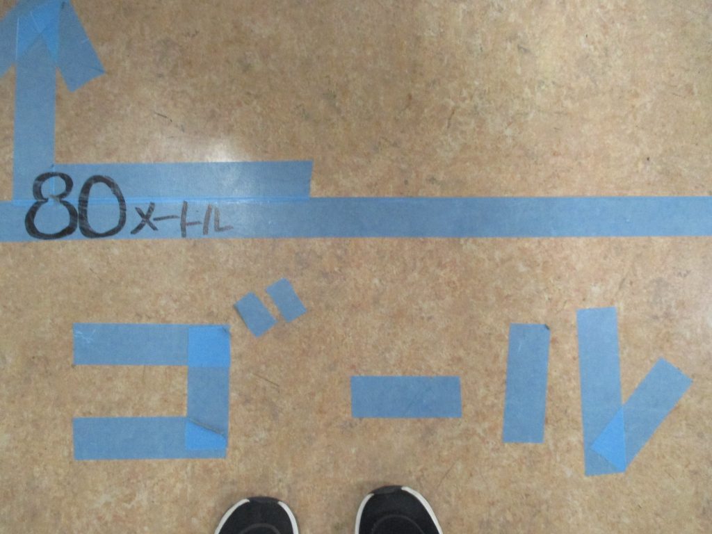 廊下に10メートルごとに表示を入れ、ロビー(40メートル地点)に