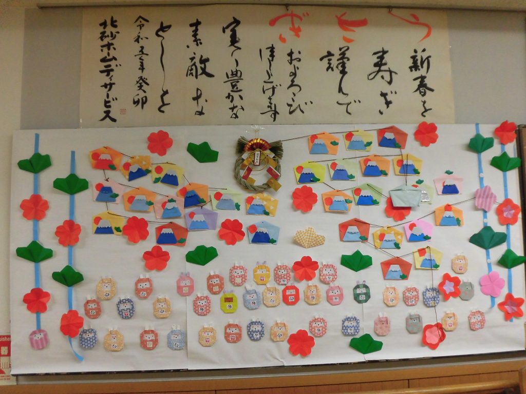 令和5年の壁画作り開始です。折り紙を、折ったり・切ったり・貼ったりで完成です。