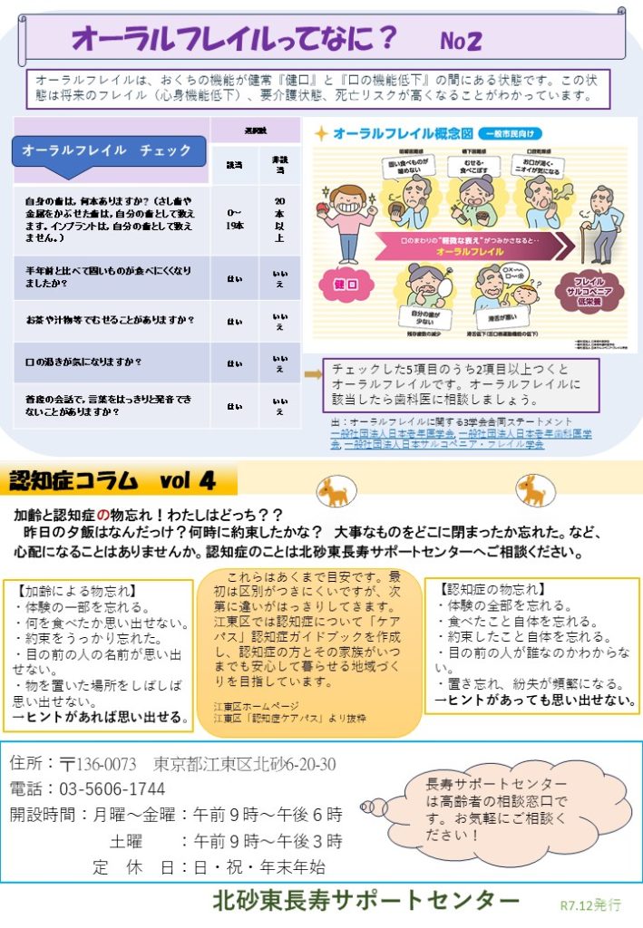 ≪北砂東長寿サポートセンター(地域包括支援センター)より≫