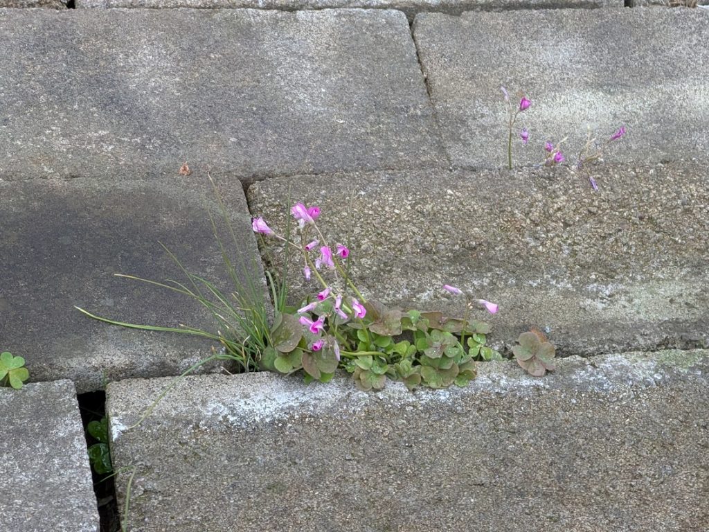 ★ブロックの石畳、の隙間に頑張って咲いています。