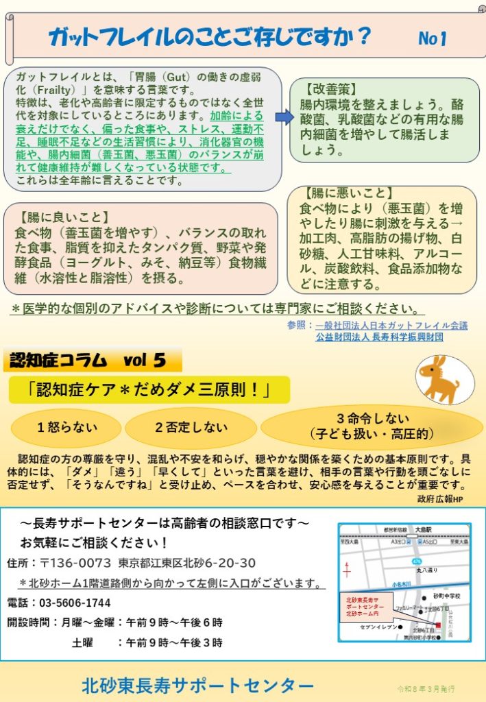 【北砂東長寿サポートセンターより】