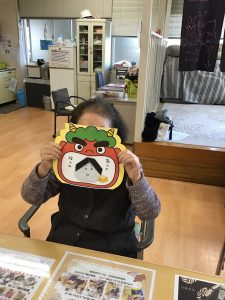どうです、まさに鬼は外側で福は内側にある構図になっているでしょう。利用者様も思わず「かわいい~」と歓喜の声をあげる場面も。