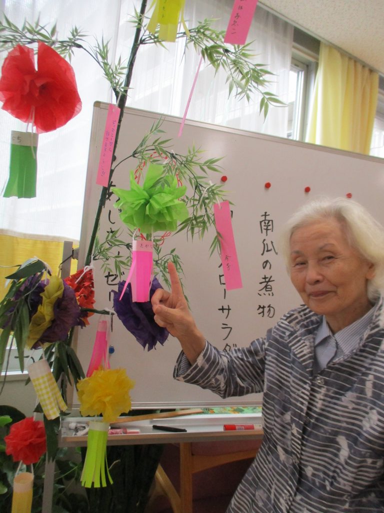 今日から、7月ということで七夕の短冊に願い事を利用者様には書いて頂きました。利用者様によっては願い事がたくさんあり過ぎる方や、逆に願い事がなくて困っている方もいました。